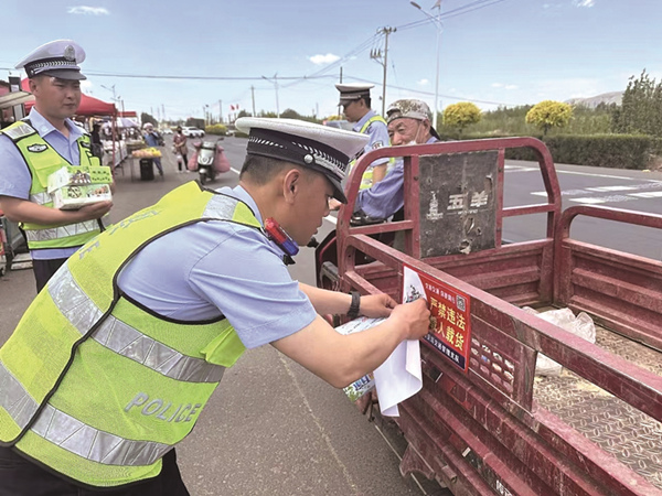 红山区公安分局交管大队开展“美丽乡村行”交通安全宣传活动。